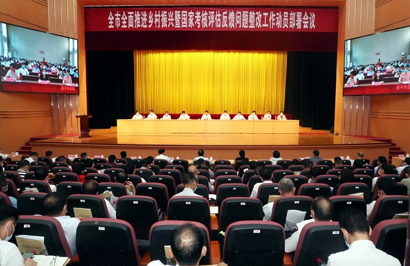 贵港新闻网快讯 5月20日下午,全市全面推进乡村振兴暨国家考核评估反馈问题整改工作动员部署会议在市区召开,会议传达全国巩固拓展脱贫攻坚成果同乡村振兴有效衔接暨乡村振兴重点帮扶县工作推进会、国家2021年度巩固拓展脱贫攻坚成果同乡村振兴有效衔接考核评估发现问题整改工作电视电话会议、自治区党委农村工作(乡村振兴)领导小组会议和全区全面推进乡村振兴暨国家考核评估反馈问题整改工作动员部署会议精神,研究部署下一步工作。市长朱会东出席会议并讲话,市人大常委会主任闫九球、市政协主席肖明贵出席会议。